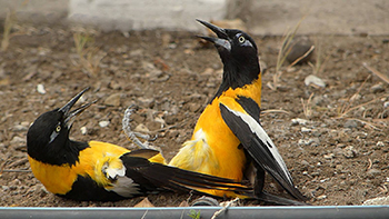 Troupials can be dangerous during their breeding season as they will attack intruders to their territory by picking with their beaks. They can cause serious injuries to your face and even photo equipment if you are not careful. So if you experience an attack, try to remove yourself from the location.