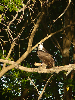 Another location Ospreys find particularly nice to roost is the Mangrove park close to the cruiseport. In between the mangrove trees, usually on a perch on which the bird can oversee its surroundings, you can find at least 1 Osprey and often even 2 of them.