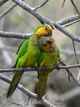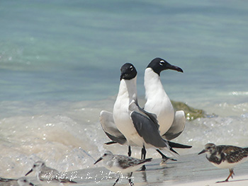 Even if the dry season is hitting hard, there are species that choose to reproduce in these kinds of circumstances. The Brown-throated parakeer or Prikichi is one of them. This endemic subspecies is now making out and flirting in this period in order to jointly build a nest in, among other things, termite nests. If you are lucky enough to find a couple in love, you can observe the entire courtship ritual with all the flirting, including the mating. It is not strange that these birds are starting to produce their offspring in this period. Now that it is getting drier, the columnar cacti are blooming in optima forma and producing fruit, an important food source for our native parakeets. In addition to the parakeet breeding season, it is also almost time for seabirds such as terns and Laughing gulls to start their breeding season, as they do every year from March to July/August. From the end of January, the numbers of Royal terns and Laughing gulls have slowly increased. Suddenly, the Sandwich terns and American Least terns will also appear on the scene after being absent for months. Slowly but surely, the birds will get their breeding plumage and pair bonding will begin. Like the Laughing gull couple in the photo, who not only have their characteristic dark brown heads but also dark gray wings and a reddish haze over their beaks. The birds will conquer each other by means of a complicated dance ritual in order to be able to produce a new generation together.