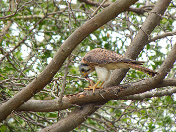 The smallest bird of prey on our island, the Kinikini or American kestrel, has also produced young that will have to survive on their own from now on. The young birds are not yet very good at hunting and if they do succeed, they will fight off any form of competition, including a brother or sister who is still nearby and thinks they can also have a bite. The photo shows a young male kinikini who is happily devouring a lizard.