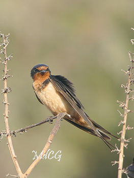 Several swallow species occur on the island during the migration period, of which the Barn swallow is by far the most frequently seen. Recognizable by its long, v-shaped tail and black, white, and reddish-brown coloration.
