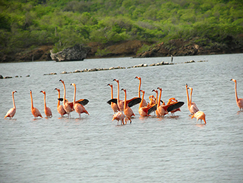 October is the perfect time to observe the fascinating courtship dances of the popular American (or Caribbean) flamingo. The breeding season is upon us, and the males will do their utmost to impress the females and form a lasting pair. Together, they will build a nest (sadly no longer in Curaçao) and raise the young.