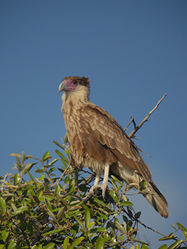 The timing of the nesting of the Crested Caracaras depends somewhat on the start of the dry season. Since these birds enjoy scavenging, the dry season, when many other animals die, is the ideal time for nesting. This is especially true for the period from July to August to September, when it is generally dry enough to hunt live prey in the then bare undergrowth, in addition to scavenging. In October, it seems as if young Warawaras are emerging from the undergrowth everywhere. In most cases, these are animals chased away by their parents because they are old enough to forage for themselves. As this isn’t always a smooth process, the animals often come to places where people throw a lot of trash, as there’s always something edible to be found, such as a dead dog or cat. In some locations on the island, the young Warawaras group together and form real packs of sometimes nearly 25 animals or more. Together they scour the mondi for food, and together they can pose a real risk to larger animals. Incidentally, many of the young warawaras will not survive. Even with these birds of prey, the law of the strongest and the smartest applies.
