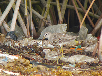 It’s not just humans who have chosen our island as a wintering location during the period when their home countries in North America or Europe experience drizzly, cold weather with short, chilly days. Birds also choose our island as a base to survive the winter months before returning to their breeding grounds in North America in the spring to produce the next generation. The Short-billed Dowitcher (Limnodromus griseus), is one of those migratory birds. This species winters on the island in saliñas and former salt pans, and also along the shallow coasts of inland waterways, where they use their long bills to search for invertebrates in the mud. Besides the Short-billed Dowitcher, the Semi-palmated Plover (Charadrius semipalmatus) also winters on the island. Young birds can be found year-round, while adults fly back to their breeding grounds in the spring. The same applies to the year-round Spotted Sandpiper (Actitis macularius). Despite their name, the birds that overwinter here in their winter plumage do not have spots on their breasts. In spring, this changes, as black spots form on the breasts, and the birds prepare for the journey back to their breeding grounds.