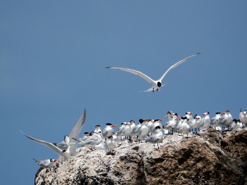 When a Cayenne or Sandwich tern is practising his dance moves to impress his lady you need no television to be entertained. Just watch this fellow practice the entire sequence of mating. Very soon these birds will be nesting on our island, and hence they have started to arrive in large numbers. Sandwich / Cayenne … More Tern dance moves